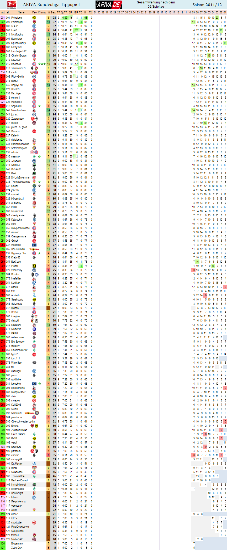 ENDAUSWERTUNG -Spieltag 09 - Gesamtwertung 9/9