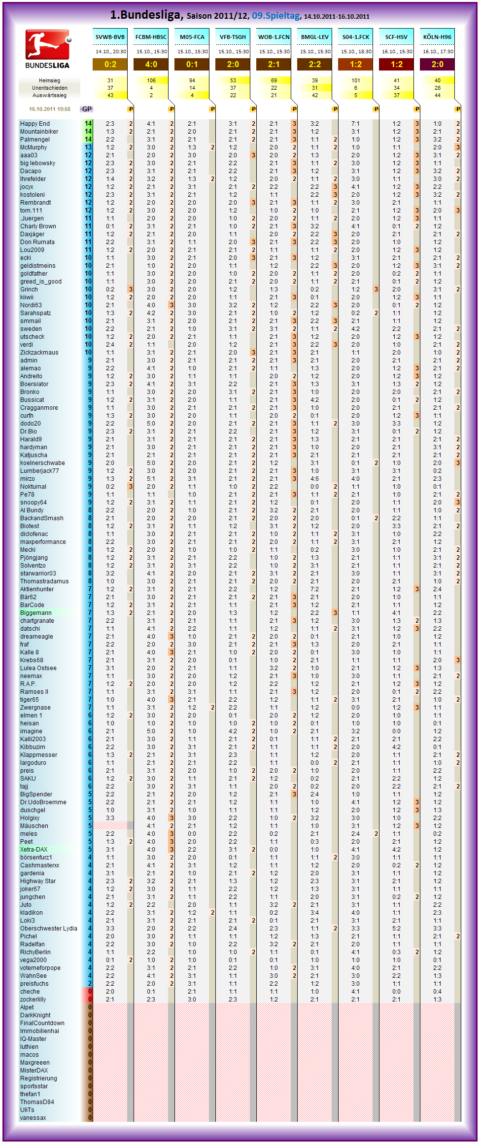 ENDAUSWERTUNG -Spieltag 09- Tagessiegerwertung 9/9