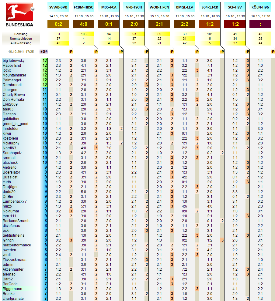 Gespielt wird der Spieltag vom 14.10.2011 20:30 - 16.10.2011 17:30..
