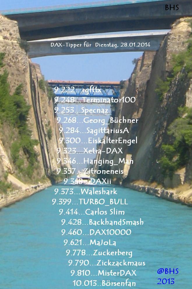 Gewinnerlinks 2.238.DAX Tipp-Spiel, Dienstag, 28.01.2014,17.45 Uhr, DAX .... 9406,91