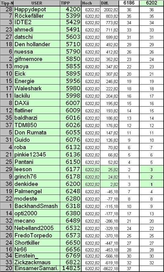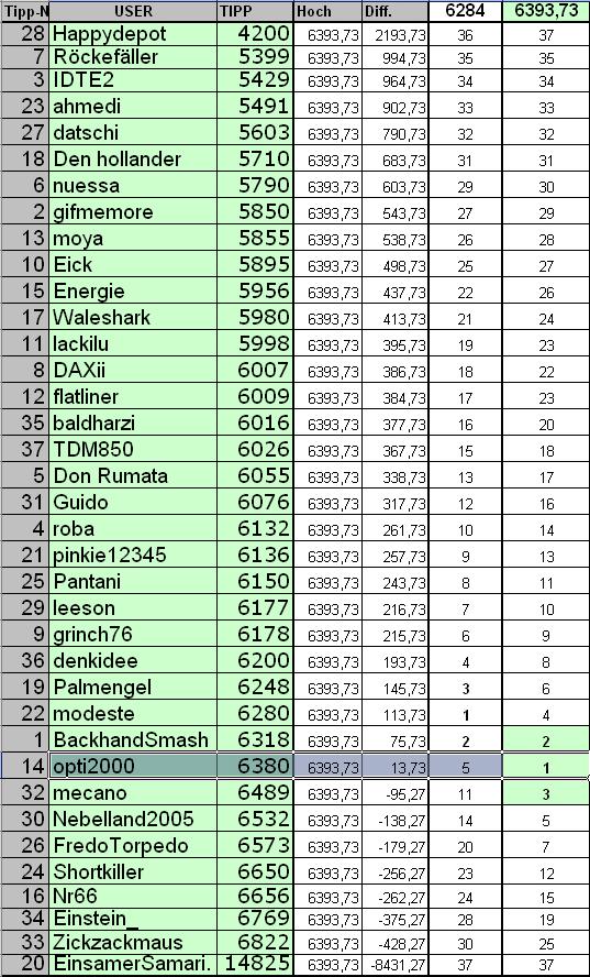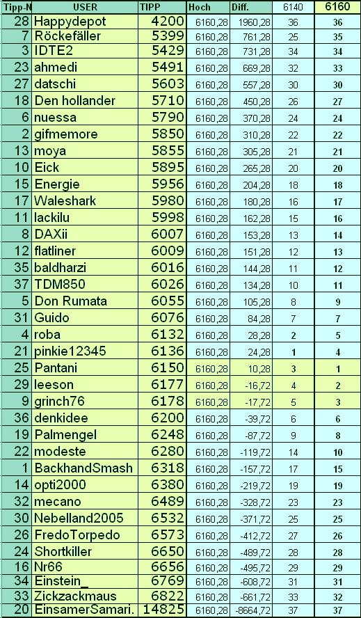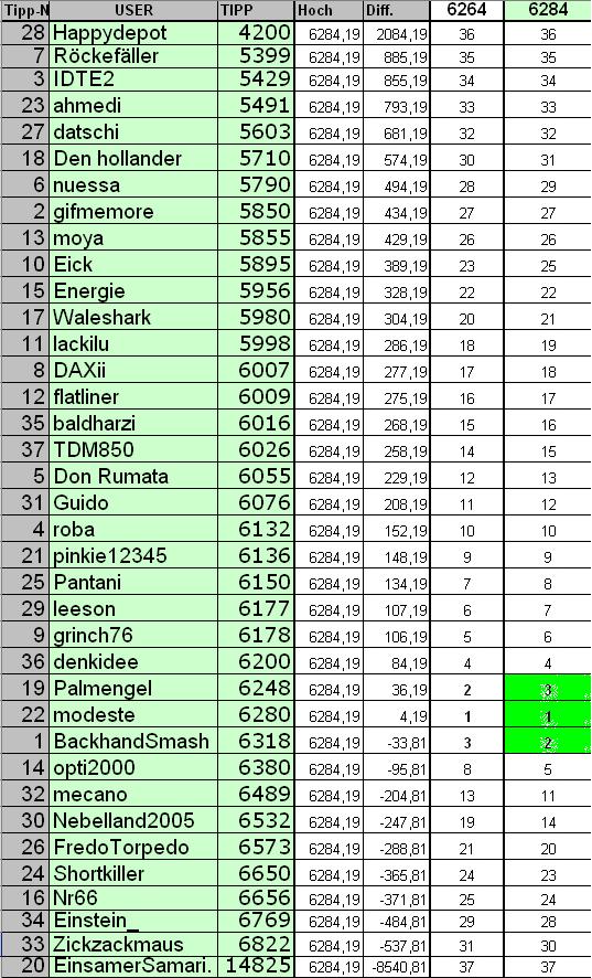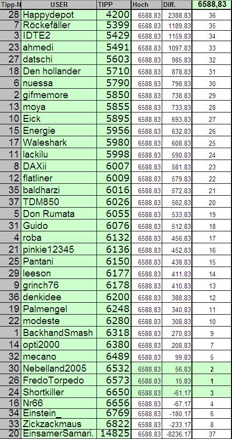 Name Tipp DAX Diff. Platz