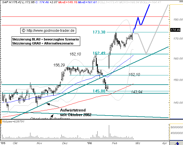 Aufgrund der Entwicklung halten die Analysten beim Optionsbrief eine heftige Korrektur für unausweichlich. Hierbei werde möglicherweise noch einmal die untere Begrenzung des Trendkanals bei der 5.000er Marke getestet. Wann und wo der Startschuss zu dieser Korrektur falle, sei aus heutiger Sicht allerdings nicht zu prognostizieren, da 1.000er Grenzen nach Meinung der Handelsexperten auf die Marktteilnehmer enorme Anziehungskraft ausüben würden. Deshalb sei bei einem Test der 6.000er Marke sogar ein kurzer Ausflug über diese Hürde denkbar. Allerdings sollte die Schlussphase der "Super-Rally" spätestens 2 bis 3 % oberhalb dieser Grenze ihr Ende finden, so die Strategen weiter. Hierbei handle es sich aber um die Hochs für die nächsten 6 Monate, da der endgültige Break nach deren Einschätzung erst nach der Sommerkorrektur im vierten Quartal oder im Frühjahr 2007 gelingen werde.