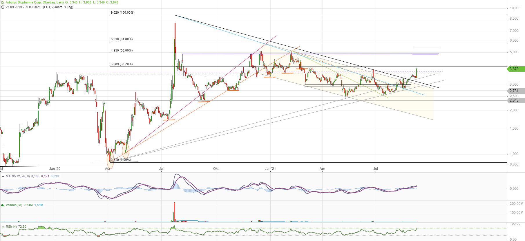 Hier sollte es sich lohnen noch länger abzuwarten. Wir sind gerade einmal auf dem Niveau von vor ein paar Wochen und die Patententscheidung sollte deutlich mehr wert sein als der heutige Anstieg. Sicherlich wird es noch dauern bis eine endgültige Entscheidung getroffen ist bzw. bis tatsächlich Geld fließt. Aber wenn es fließt dann reichlich. Oder Arbutus wird für einen deutlich höheren Kurs direkt aufgekauft. Ist mir auch recht