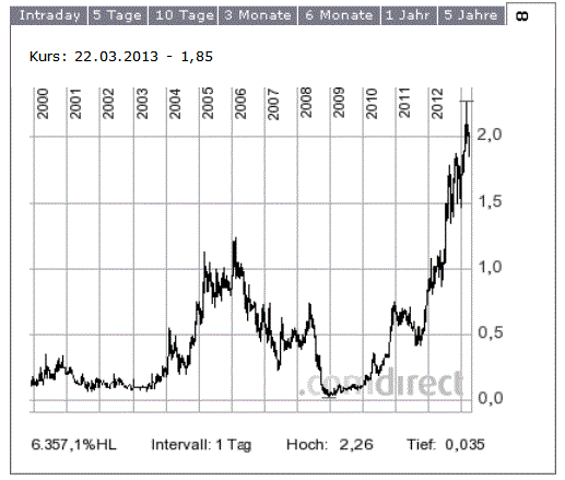 hast du mal paar eckdaten zu diesem kanadischen unternehmen von 2009 rum, damit man das evtl mit adx vergleichen könnte. der chart sieht ja schon mal aus wie bei adx. börsenbeginn, dann aufwärts, dann abwärts richtung null und dann kam die rettung. wüsste gerne wer da wie gerettet hat. schien ja vorm aus zu stehen.