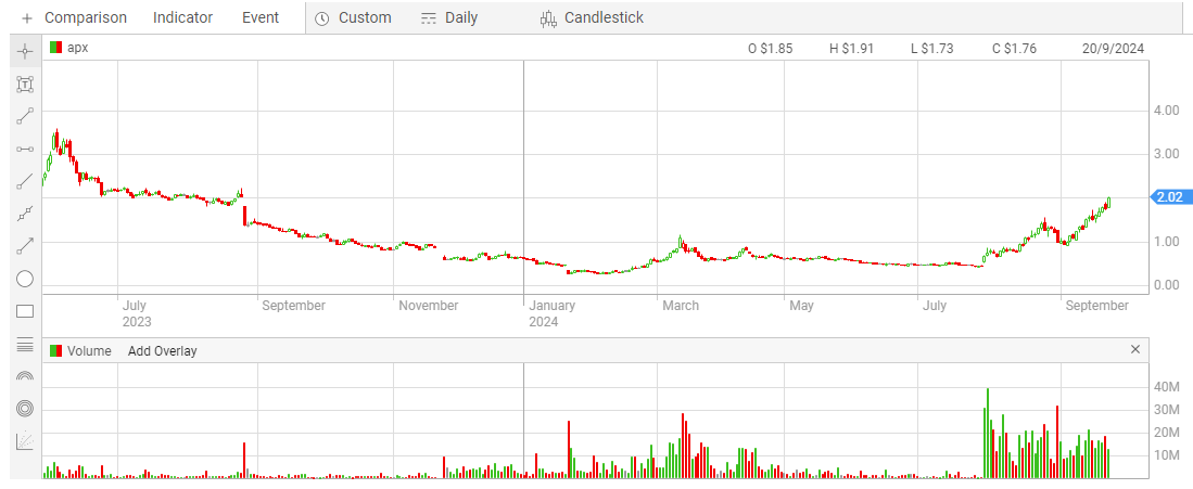 Die Anleger kauften schnell Appen-Aktien in großen Mengen, da das Quartalsupdate am 29. Juli veröffentlicht wurde. Seitdem sind die Aktien explodiert und werden um 163% höher unter dieser Marke gehandelt.