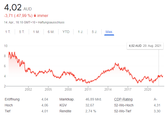 Telstra meldete einen Rückgang des Gesamtumsatzes um 4,7 Prozent auf 22 Milliarden AU-Dollar, wobei das EBITDA um fünf Prozent auf 7,3 Milliarden AU-Dollar gesunken ist
