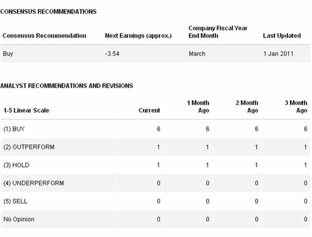 Hier die von Reuters gesammelten .... ... Analysten-­Empfehlung­en zu AB Minerals (Stand Jan.2011).­ Und die sind bei diesem Wert ziemlich eindeutig:­