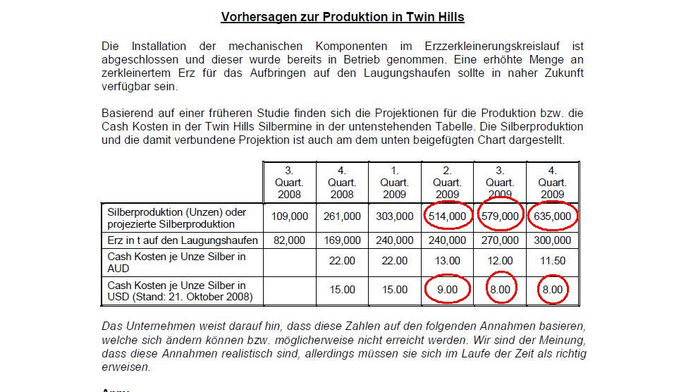 In einer Studie zeigte die Installation der mechanischen Komponenten (u. a. Sieb usw.) im Erzzerkleinerungskreislauf bereits deutliche Wirkung. Ab II/2009 wären die Cashkosten rapide gefallen und Macmin wäre hochprofitabel gewesen (Siehe Grafik unten). Da man aber keine Kredite mehr bekam (wegen der Kreditkrise siehe http://www.ariva.de/forum/...reiner-Fakten-Thread-403887#jump7572016) und die Zeit bis II/2009 nicht mehr überbrücken konnte, ging man Pleite. Hätte Macmin den Kredit bekommen, wären sie gar nicht in Insolvenz gegangen. Verstehst du? Für uns ist das m. E. DIE Chance schlechthin. IMHO wird Alcyone nun noch etwas Feintuning betreiben und dann zum profitablen Produzenten aufsteigen.