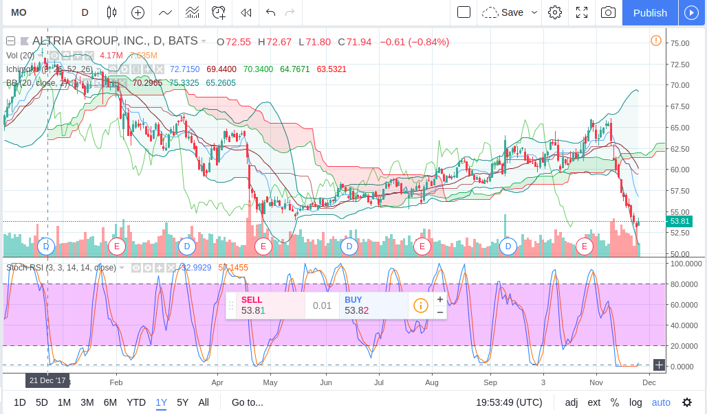 Ist dein stetes rein und raus nicht ein Renditekiller (Steuern, EK- und VK-Spesen)? Gerade bei Altria würde sich doch langfristiges buy and hold anbieten.