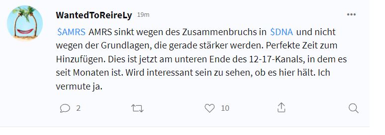 Ich denke wir sind uns aber alle einige, dass unsere Amyris durch ihre Historie klar zu den Gewinnern und potentiellen Innovationstreibern zählt, wenn die Preise weiterhin so eskalieren. Nur ein Grund mehr für mich langfristig an Amyris festzuhalten. Größte Position derzeit in meinem Portfolio.