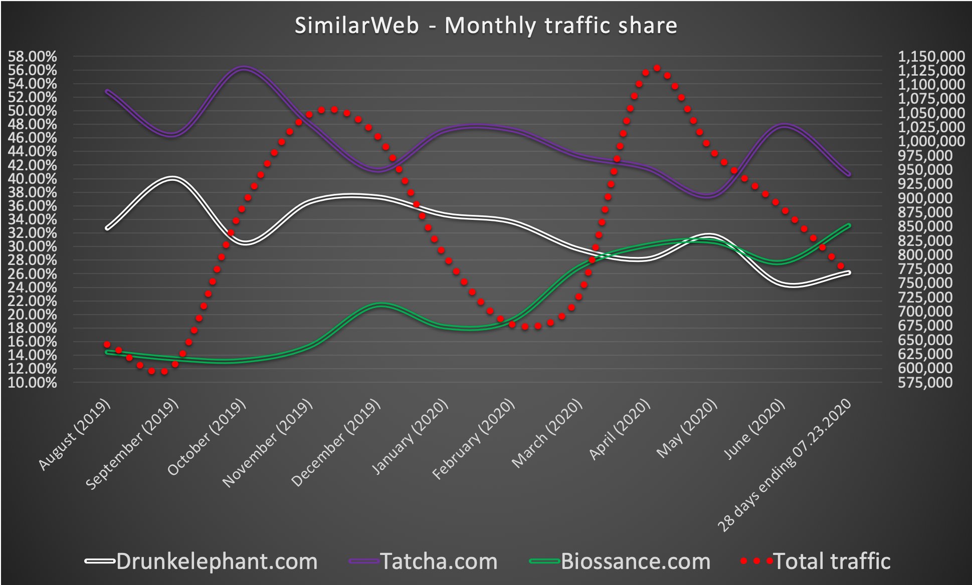 ... da wird viel scheiße geschrieben - aber es sind auch viele fleißig statistiker da an board... immer wieder spannende darstellungen der entwicklung des marktanteils und biossance hat unter den großen brands inzwischen um die 30 prozent marktanteil nach aufrufen. sehr sehr ordentliche entwicklung.