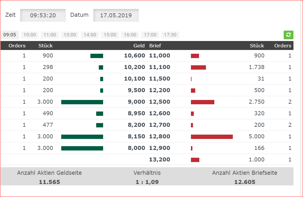 von 13.30 (Xetra) derzeit 13 €