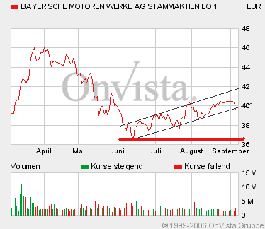 Nachdem die BMW-Aktie im Mai die recht massive Widerstandszone zwischen 46 und 48 Euro nach oben durchbrechen konnte, kletterten die Kurse rasch bis auf mehr als 50 Euro. Seitdem konsolidiert die Notierung jedoch, und auch die nun als Unterstützung wirkende Zone 46/48 wurde dabei getestet.