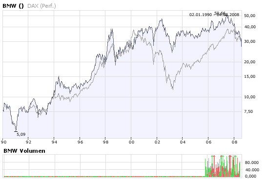 Credit Suisse muss sich an die eigene Nase fassen, alles Quatsch was die schreiben.­ BMW hat noch nie den Kurs des DAX unterschri­tten, auch zur großen Baisse 2003 nicht. Warum soll es die Aktie dieses Mal tun?