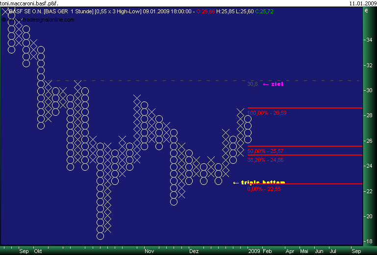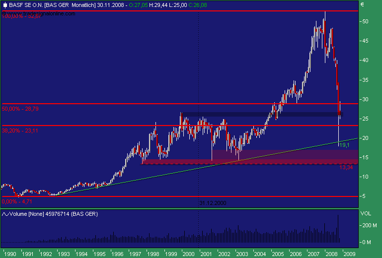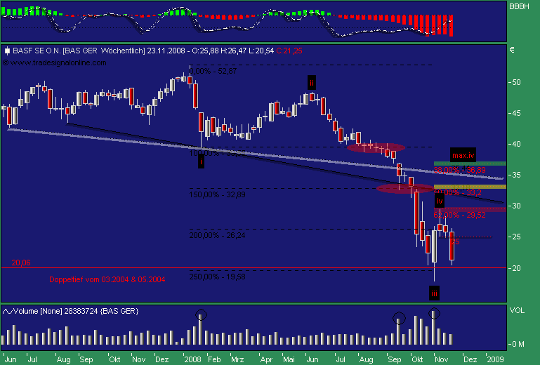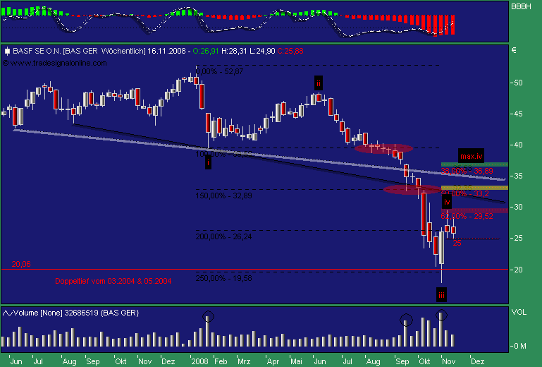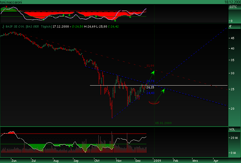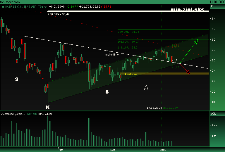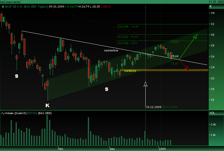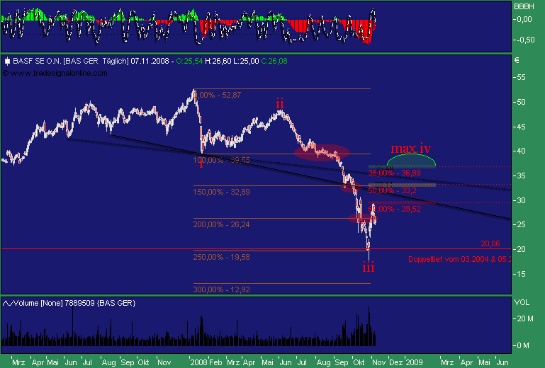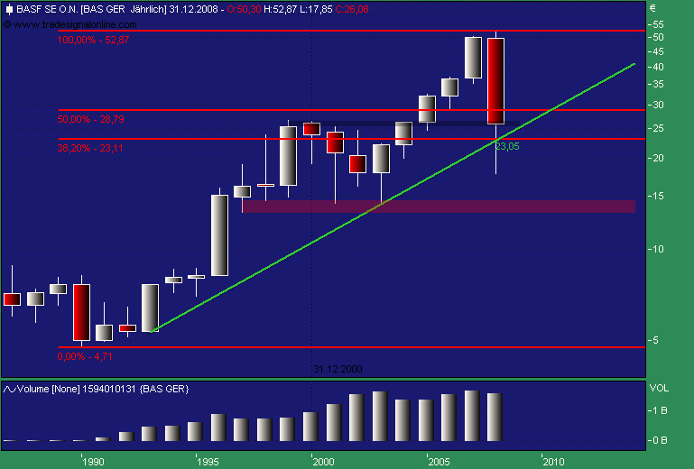 basf wurd nicht gerade mitgerisse­n mit dem DAX30, befindet sich auch erstmal in einer minimal korrektur,­ vernünftig­ wären die 50% als wende punkt im bullischen­ trend