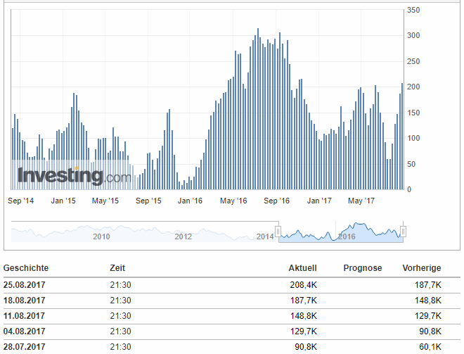 USD 1.239 (Schlusskurs) am Fr, 1.9.2017 und die Aufwärtstrendlinie 12/2016 im Wochenchart bleibt unbeschädigt. Hier müssten 3 Widerstände + eine 3-fach-Kreuzunterstützung durchschlagen werden.