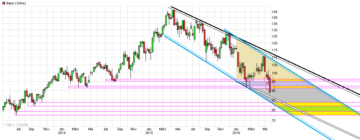 ...nicht zu fallsüchtig zu werden. Schon recht heftig das Tempo mit dem man die letzten Tage fällt. Heute direkt mit einem Opening Gap nach unten weitergemacht wegen Stress den man jetzt mit den Behörden hat mit Xarelto. Damit kommt man der wichtigen horizontalen Unterstützungszone von ca. 107€ deutlich näher. Sind aktuell nurnoch ca. 4 Euro die fehlen würden und man wäre wieder an der "Kampfmarke". Von daher wäre interessant zu wissen wie lange man jetzt zeitlich in der Schwebe bleibt bzgl. Xarelto. Denn das lastet natürlich neben dem ohnehin schwachen Gesamtmarkt erstmal weier auf dem Kurs.