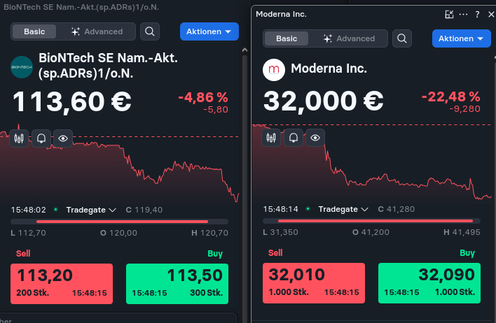 Die Moderna-Aktie steigt im Mittagshandel, nachdem RFK Jr seine Position klargestellt hat, nicht impfstoff- oder industriefeindlich zu sein. Der positive Stimmungsumschwung erfasst auch andere Impfstoffhersteller wie Novavax, BioNTech und Pfizer.