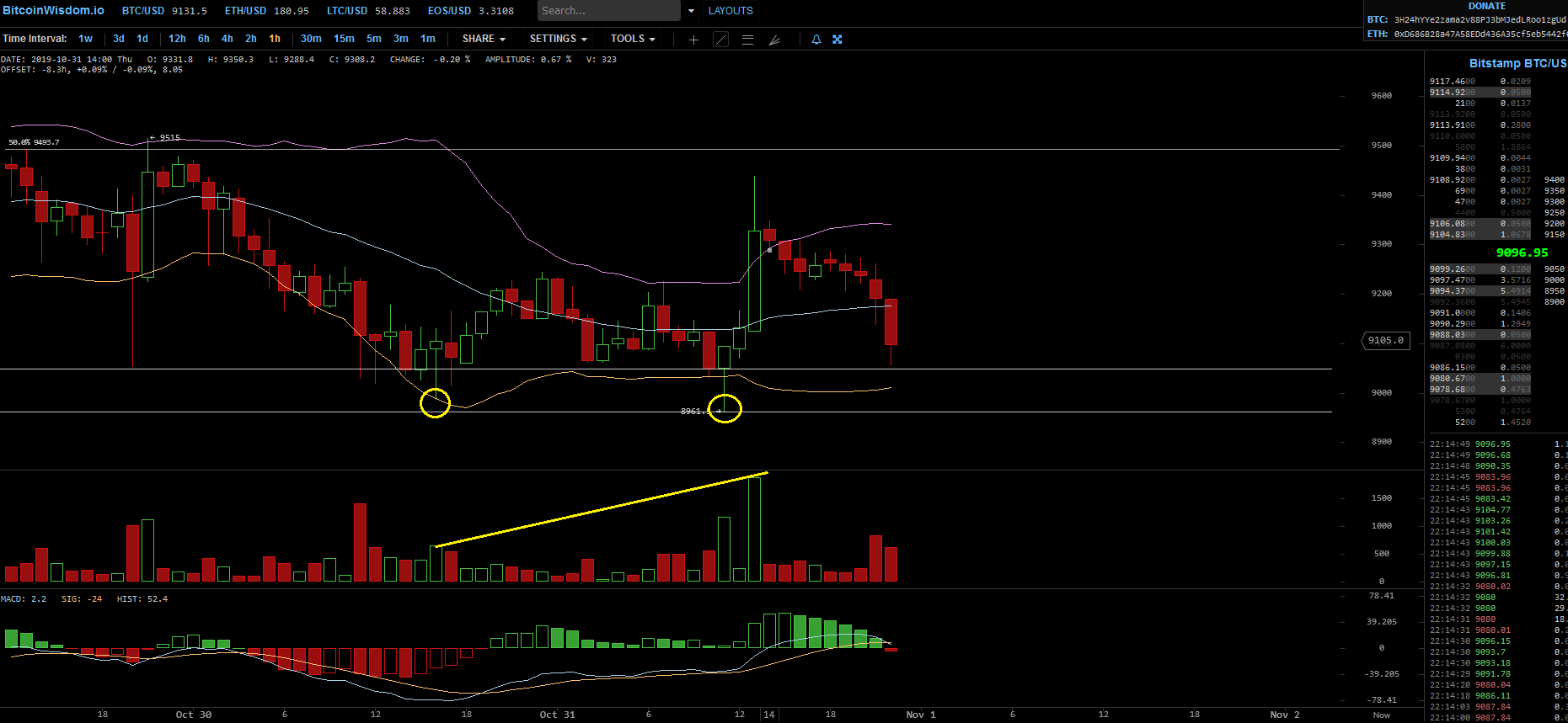 Wir hatten heute ein Low bei $ 8.974 und ein High von $ 9330. Zum Zocken ein zu hohes Risiko um Geld zu verlieren, da der Wind sich ständig drehte.