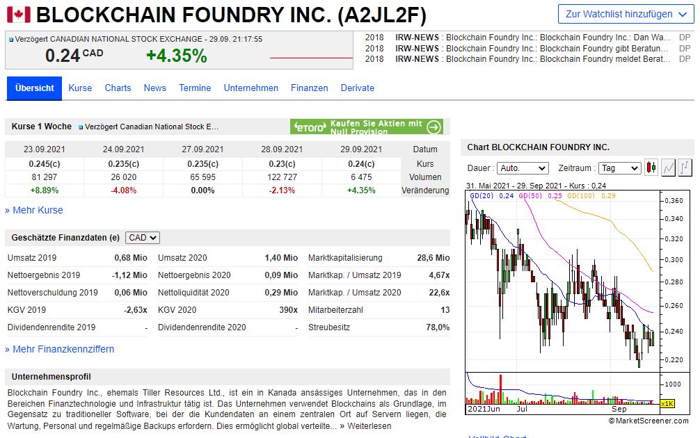 Bitcoin zieht an, Syscoin zieht an... Viele Blockchain Aktien steigen - nur Blockchain Foundry dümpelt herum und geht immer tiefer in den Keller... was ist hier los?