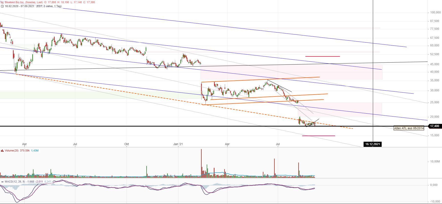 Mit solchen Aussagen wie: "tiefer kann es ja eigentlich­ kaum noch gehen" wäre ich immer vorsichtig­. bluebird Bio hat der Erwartunge­n der Analysten für Q2/21 klar verfehlt