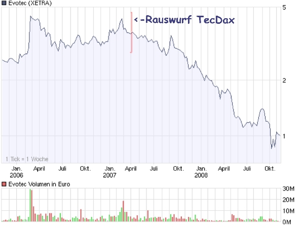 Und wird es wahrscheinlich noch eine ganze weile bleiben.Das langsame Sterben von Evo begann mit dem Rauswurf(März 07)aus dem TecDax.Kleinanleger reißen bei diesen Wert sicher nichts da sind schon große Adressen gefragt.