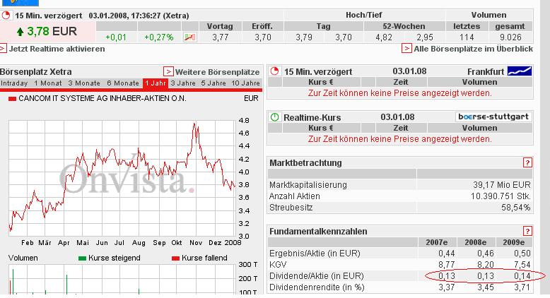 Dividende für das Geschäftsjahr 2007 zwischen 10 – 15 €ent?