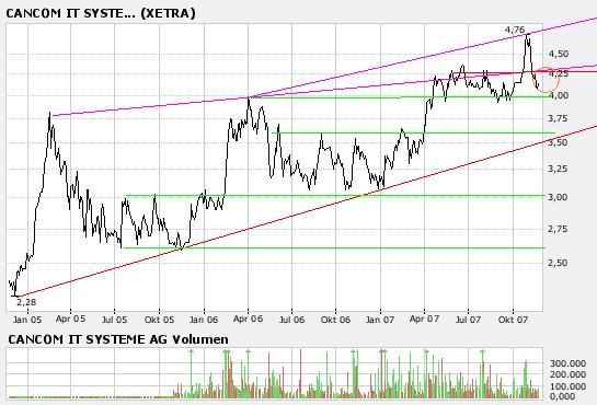 Durch den Kauf der ausstehenden 24,9 Prozent erwartet CANCOM für 2008 einen Ergebnisbeitrag von 4 Cent pro Aktie.