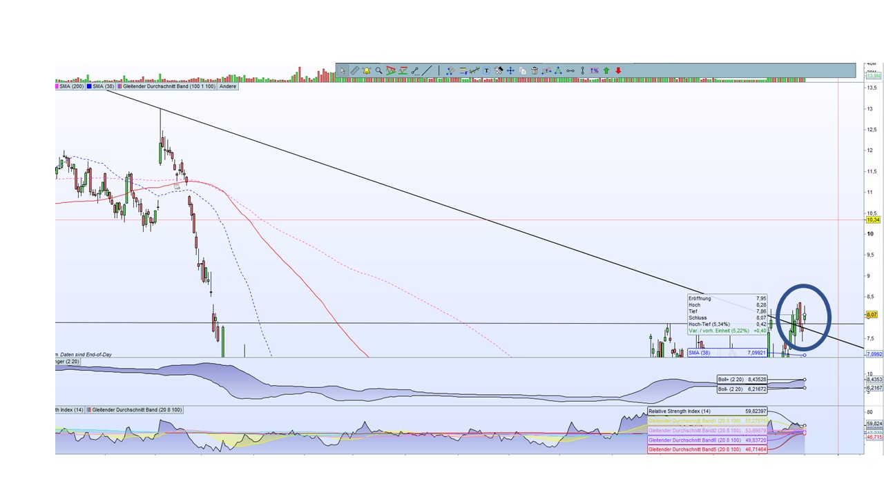 Technisch finde ich, dass letzte Woche der mehrjährige Abwärtstrend (seit 2015/2016) durchbrochen wurde. Schaut mal unten.