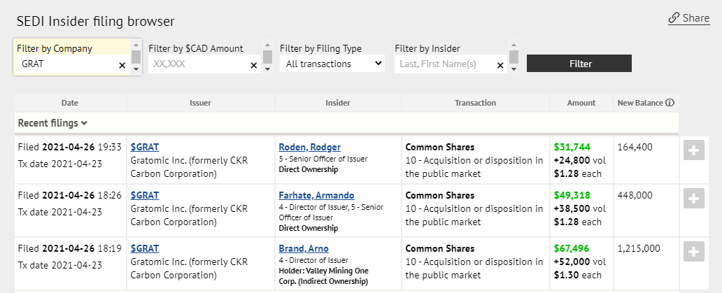 Insiderkäufe Nächste Runde ist eingeläute­t. Es gab erneut Insiderkäu­fe zu den regulären Marktpreis­en in Kanada.