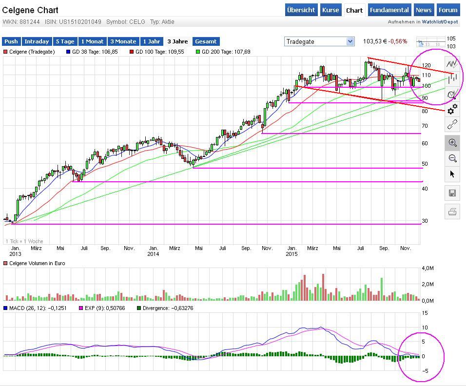 und Celgene im Abwärtstrend läuft: Charttechnisches Kaufsignal abwarten