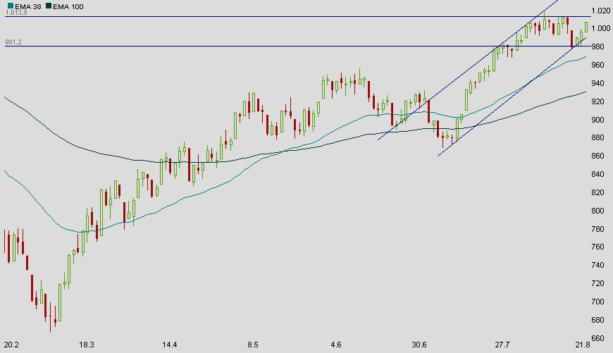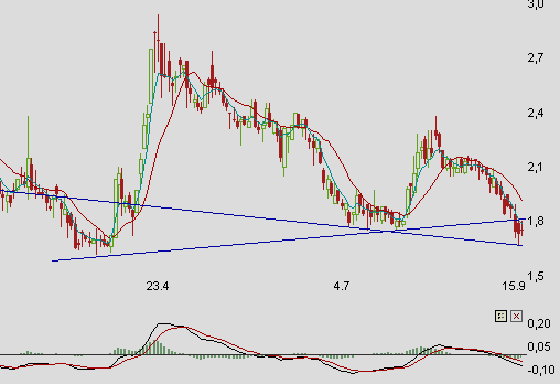 Was sagt das aus? Richtig, es bedeutet dass die Kurse steigen oder sinken, in diesem Fall gehe ich von einer Fortsetzung des Trends aus. Was ist aber, wenn die Indizes nachgeben? Dann ist nicht auszuschließen, dass wir nochmal auf 3,80 zurückfallen - lassen wir uns überraschen...