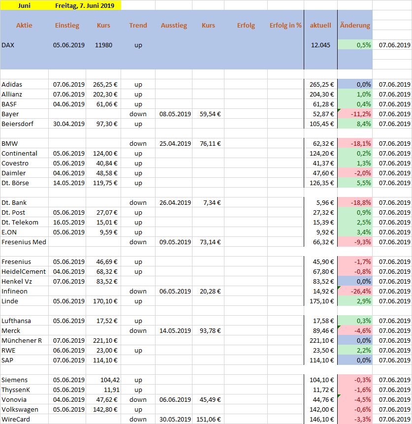 Die Papiere von BAYN, FRE, HEN3 und LIN wurden am 7.5.19 verkauft. Bei FRE erfolgte ein Wiedereinstieg am 9.5.19.