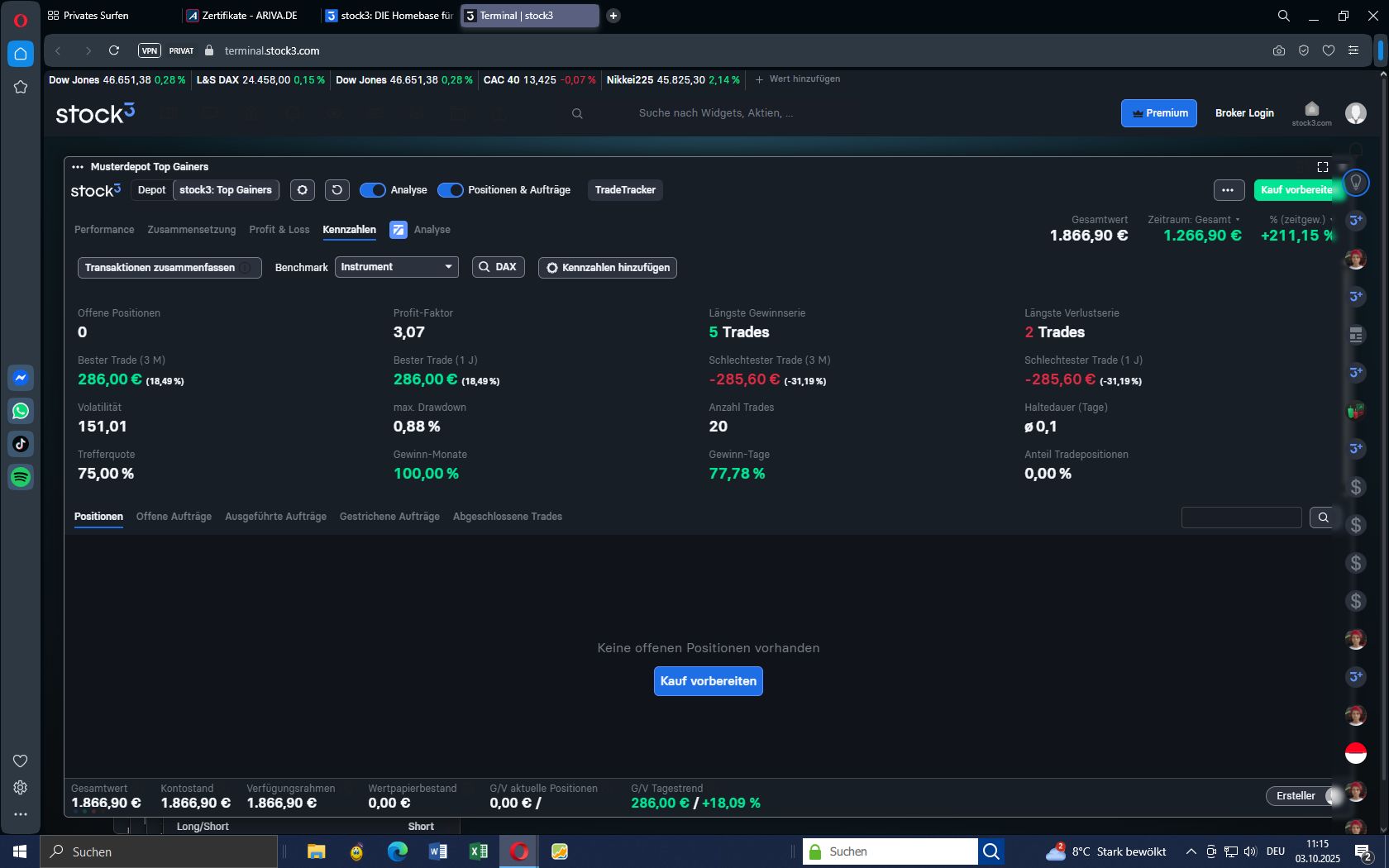Wer sich über das nicht manipulierbare Ergebnis der überarbeiteten Indikatorenkombination informieren möchte, kann sich mein laufendes Trader-Depot anschauen.