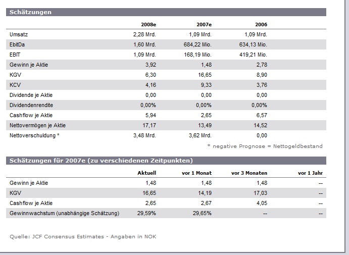 Bilanzprognose dazu: Quelle: comdirect.­de; die Zahlen sind in NOK.