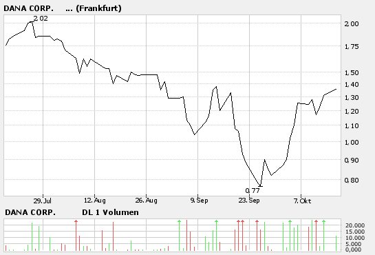 Diese Meldung könne der Aktie allerdings kaum noch was anhaben. So habe der Titel in den letzten Monaten schon das schlimmste überstanden. Von Kursen bei rund 14 USD im September 2005 sei es abwärts gegangen bis auf knapp 0,60 USD. Hintergrund sei eine stark negative Geschäftsentwicklung, welche schließlich dazu geführt habe, dass Dana zahlungsunfähig geworden sei. Der US-Konzern habe daher für sich und seine 40 US-Tochtergesellschaften den Gläubigerschutz nach Chapter 11 des US-Insolvenzrechts beantragt. Laut Dana sei dabei ein Gemeinschuldner-Kredit in Höhe von 1,45 Mrd. USD vereinbart worden, der den Weiterbetrieb sicherstellen solle. Damit würden die zwei Kreditlinien von 400 Mio. USD bzw. 275 Mio. USD abgelöst.
