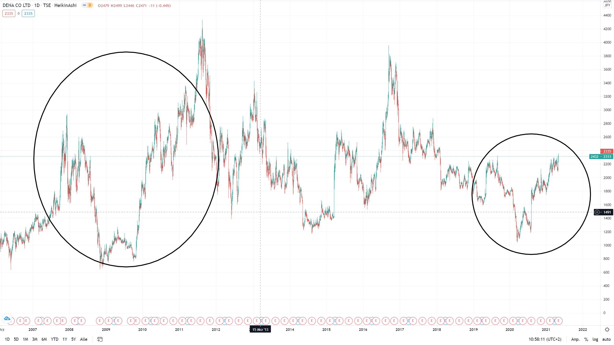 Der Vorstand von Data Horizon ist gut gereift, um nicht zu sagen im besten Alter Ü60 bis 73 Jahre. Im Zuge der Vereinbarung kann DeNA seinen Anteil bis 2024 erhöhen. Der Kurswert von Data Horizon hat nach Bekanntwerden einen ordentlichen Hops gemacht.