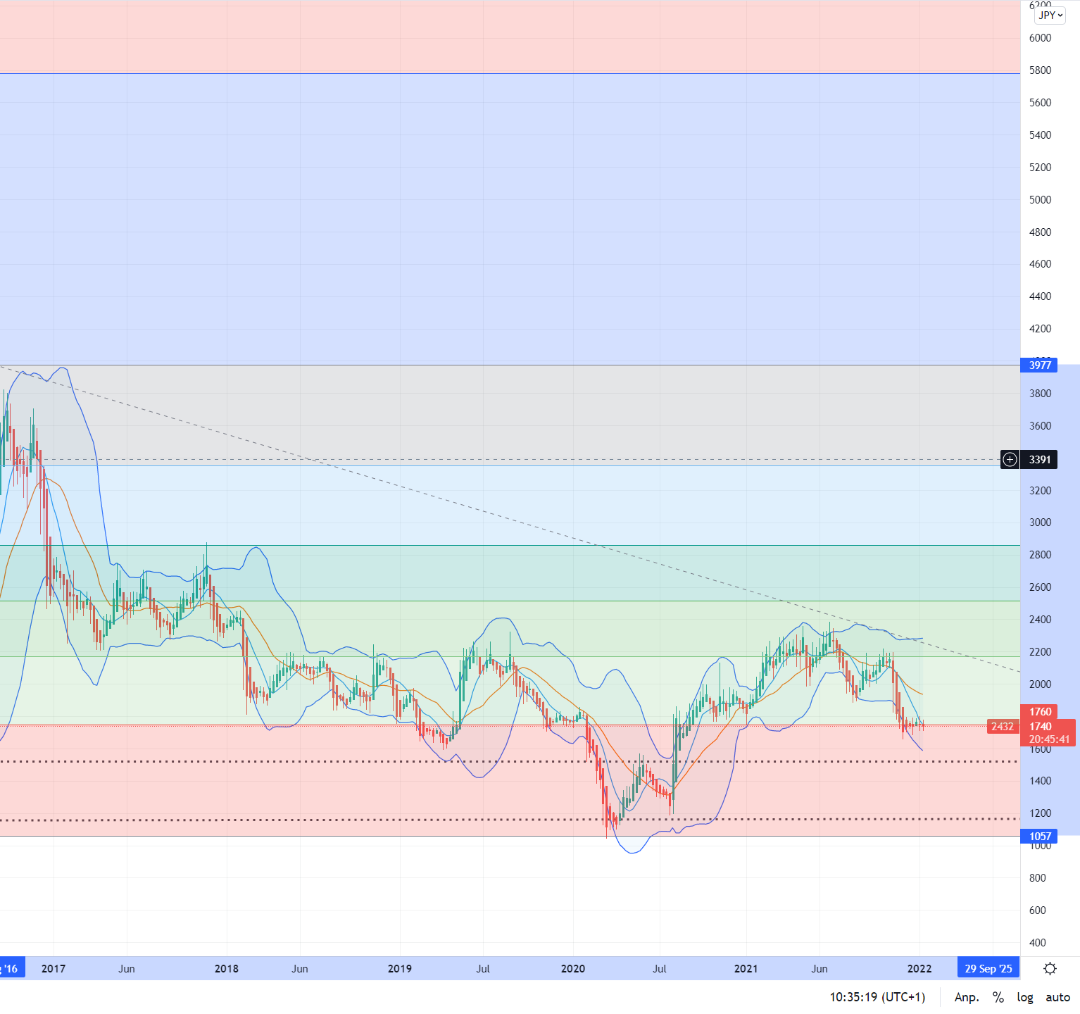 Liegt seit Ende November auf der Retracekante, liegt außerhalb des Fokus der Anleger. Weswegen das KBV unter 1 liegt.