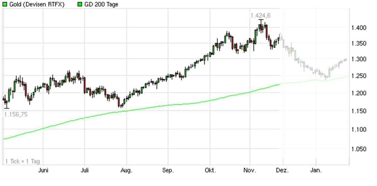 Und da der Tag heute bei vielen läuft nicht so, wie erwartet, will ich Euch einen Goldchart für die nächste Zukunft zeigen...