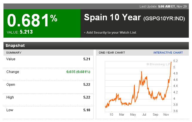 s.u. Der Markt scheint die Belastbarkeit der Spanier zu testen. Das Problem: Spanien ist zwar nicht pleite, wird es aber bald sein, setzt sich die Renditeentwicklung so fort. Das ist schon bedenklich, dass dem Markt da nicht Einhalt geboten wird, z.b. durch eine beherzte Aktion seitens der Politik.
