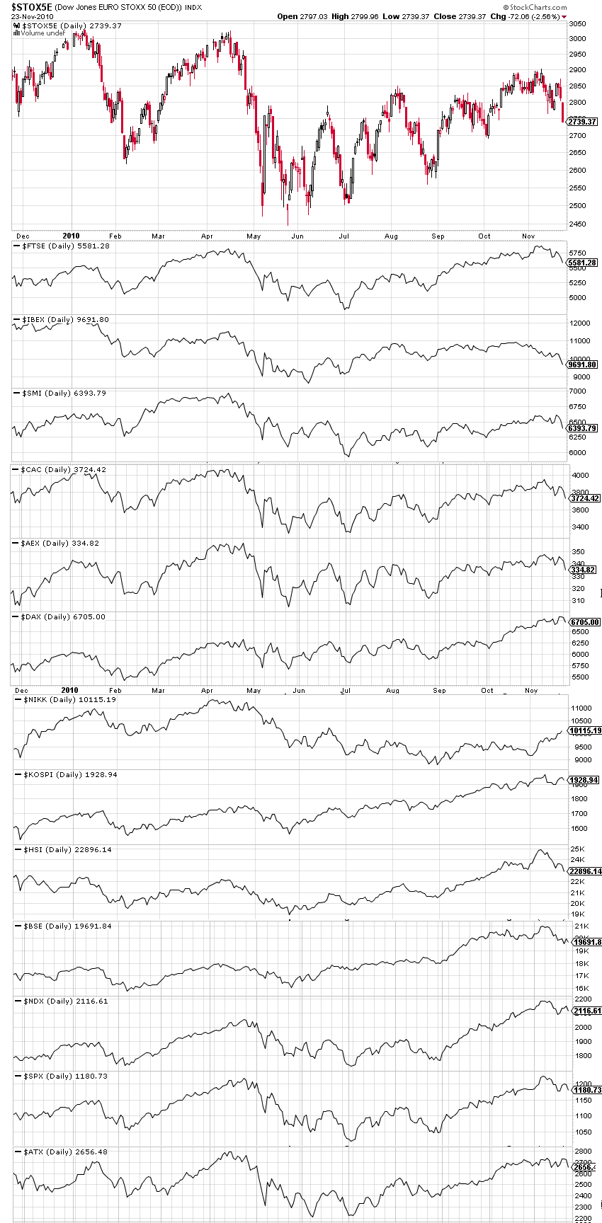 Die zuletzt deutlich gestiegenden Invest-Quoten bei nicht mehr steigenden Kursen sorgen für Nervosität im Bullenlager. Wer will schon kurz vor Weihnachten tief in einer Verlust-Posi sitzen? Zusammen mit den Irland-und Korea-Sorgen sowie der angeschlagenen Technik (Achtung: 6700er-Unterstützung!) sorgt das für eine explosive Mischung, obwohl die restlichen Nachrichten, insbesondere zum Weihnachtsgeschäft, nicht allzuschlecht sind.
