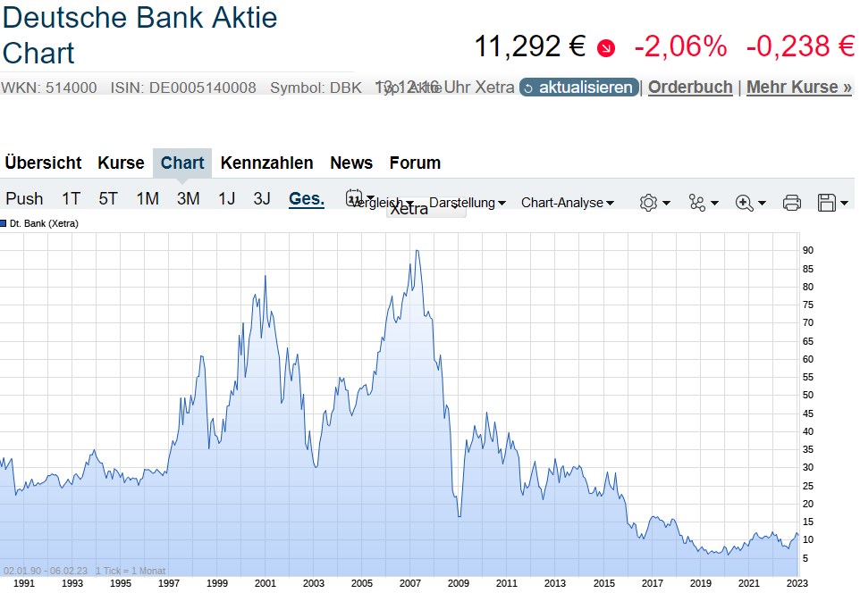 Auch 15 Jahre nach der Banken- und Finanzkrise kann bei den Bankaktien von einer wirklichen Kurserholung nicht die Rede sein. Grund: Bankaktien wurden bei ihren zahlreichen Rettungen durch Kapitalerhöhungen extrem verwässert.