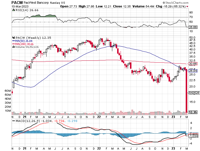 Die Silicon Valley Bank Group (SIVB) ist der größte Finanzierer von Startup-Unternehmen, speziell in der Bio-Branche. Wegen der Zinserhöhungen der Fed sind die von der SIVB gehaltenen Anleihen (Staats- und Unternehmensanleihen) deutlich im Kurs gefallen. Und zwar deshalb, weil es auf jetzt neu begebene Anleihen mehr Zinsen gibt.