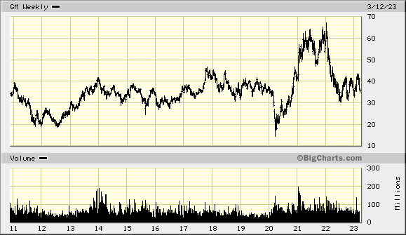 Die Tücke erkennt man im Langzeitchart. Bei Bigcharts "beginnt" der Chart von GM in 2011. Die Firma GM wurde jedoch 1908 gegründet, vor 115 Jahren.