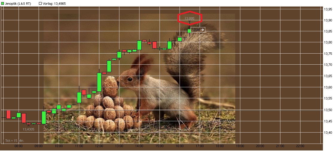 Nie und Nimmer? Würde ich so pauschal nicht sagen. Ich kann nur sagen, daß ich momentan nicht vorhabe zu verkaufen. Aber es kommt immer auf die weitere Entwicklung an. Sollte sich bei Jenoptik im Geschäft etwas nachhaltiger ungünstig entwicklen oder man den Eindruck bekommen TecDax&Co. würden länger und deutlicher abtauchen, dann bin ich keiner der deutlich aufgelaufene Gewinne einfach wieder völlig tatenlos verschwinden lassen würde, sondern würde entsprechend erstmal Kasse machen bis das Börsenklima und die Technik wieder vorteilhafter aussähen. Aber erstmal ist jetzt zu schauen, ob die positiven Signale von gestern weiter aufrecht erhalten werden. Wäre schon unbefriedigend, wenn das nicht nachhaltig wäre.