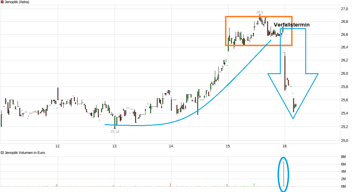 Nachdem der Aktienkurs kurzzeitig zum großen Verfallstag und zum Verfall der Aktienoptionen zum Handelsende am Freitag schnell "hochgezaubert" wurde, wird heute genauso schnell diese Bewegung abverkauft, da sie alleine terminbedingt entstand. Jetzt steht weiter die ungeklärte Frage vor der Tür, ob die wichtige Unterstützungsmarke die nächste Zeit noch weiter verteidigt wird oder nicht.