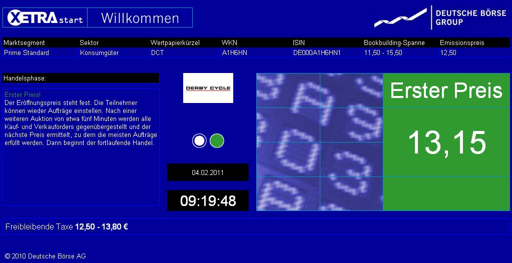 Derby Cycle, Deutschlands größter Fahrradhersteller, gehe am 04. Februar an die Börse. Das Unternehmen vertreibe unter anderem Marken wie Focus, Kalkhoff und Rixe. Mit den Mitteln aus dem Börsengang wolle die Firma vornehmlich die Expansion bei Elektrofahrrädern vorantreiben. Derby Cycle dürfe jedoch nur gut ein Fünftel des Emissionserlöses behalten, der Rest gehe an die Altaktionäre.