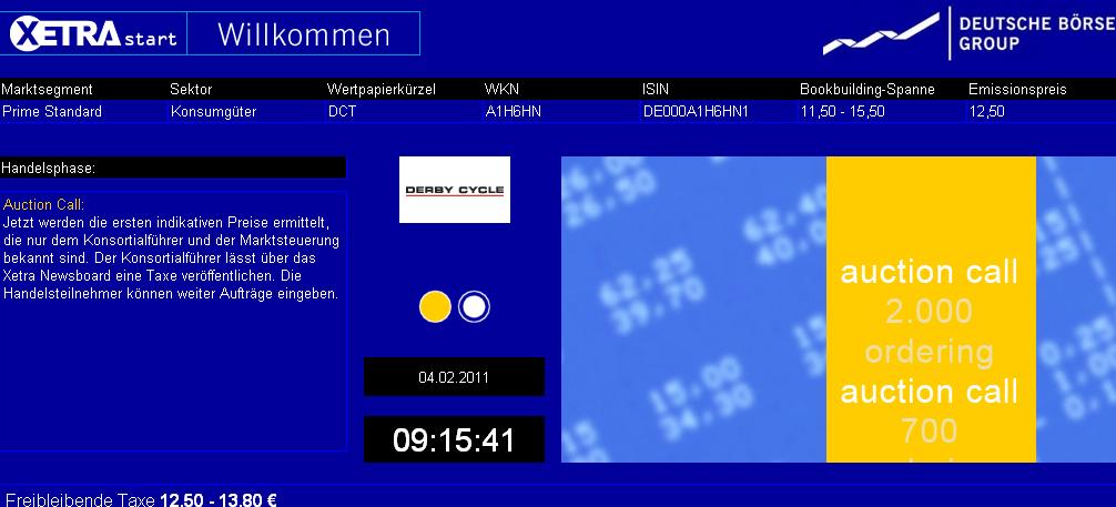 Der Emissionspreis von Derby Cycle scheint gerade noch OK gewesen zu sein - bei MIFA war er definitiv zu hoch ... hoffe nur, daß die Derby Cycle nicht auf Tauchstation geht.