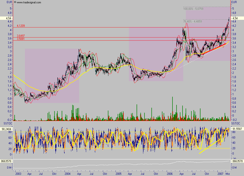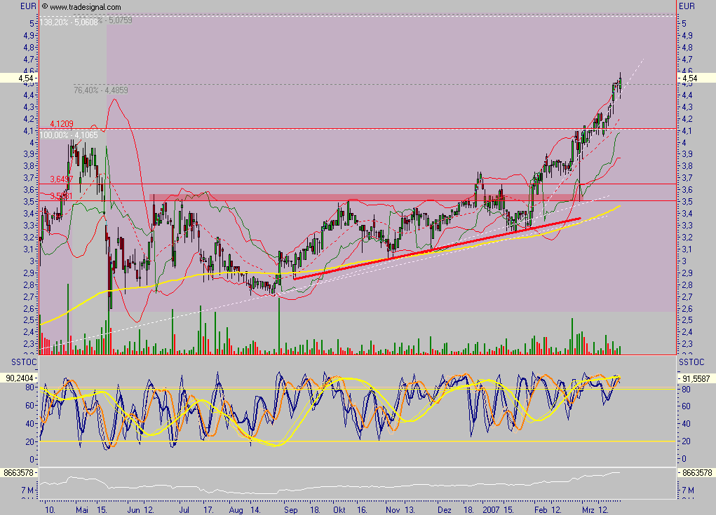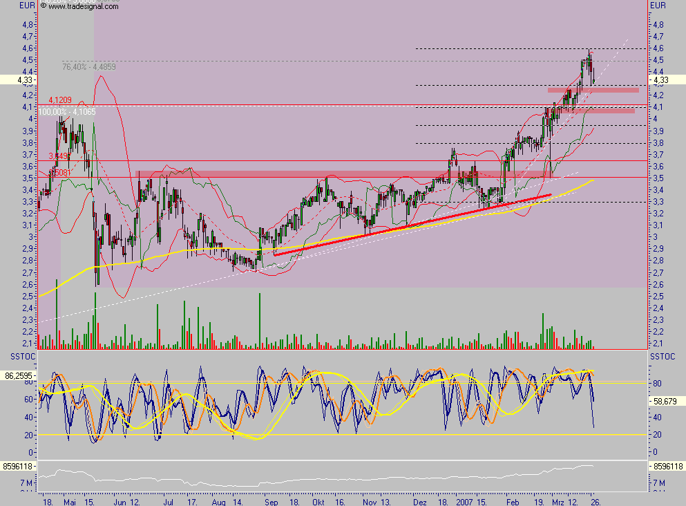 oder negative Schwingungen erzeugt. Deine Frage nach den 3,3 soll eine Suggestivfrage sein oder eine gut gemeinte self-fulfilling-prophecy? Solltest du bis jetzt den einstieg versäumt haben und auf eine ungerechtfertigt hohe (3,3 wäre das!) Korrektur hoffen, werden deine träume nicht verwirklicht werden. Es wird ein ganz kurzes atemholen sein, denn operativ läuft der laden immer besser. Gibt keinen grund zu einer deutlichen korrektur, zumal noch immer nicht hoch bewertet. Wären wir jezt bei 6 Euro, würde ich dir eine etwas stärkere Korrektur von 10-15 % zubilligen, aber nicht in der aktuellen situation.