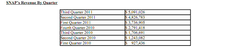 Da SNAP in 2011 ca. 20 Millionen Umsatz hatte und in 2012 eventuell Richtung 30 Millionen oder mehr gehen wird kann man sich ausrechnen was ich meine.